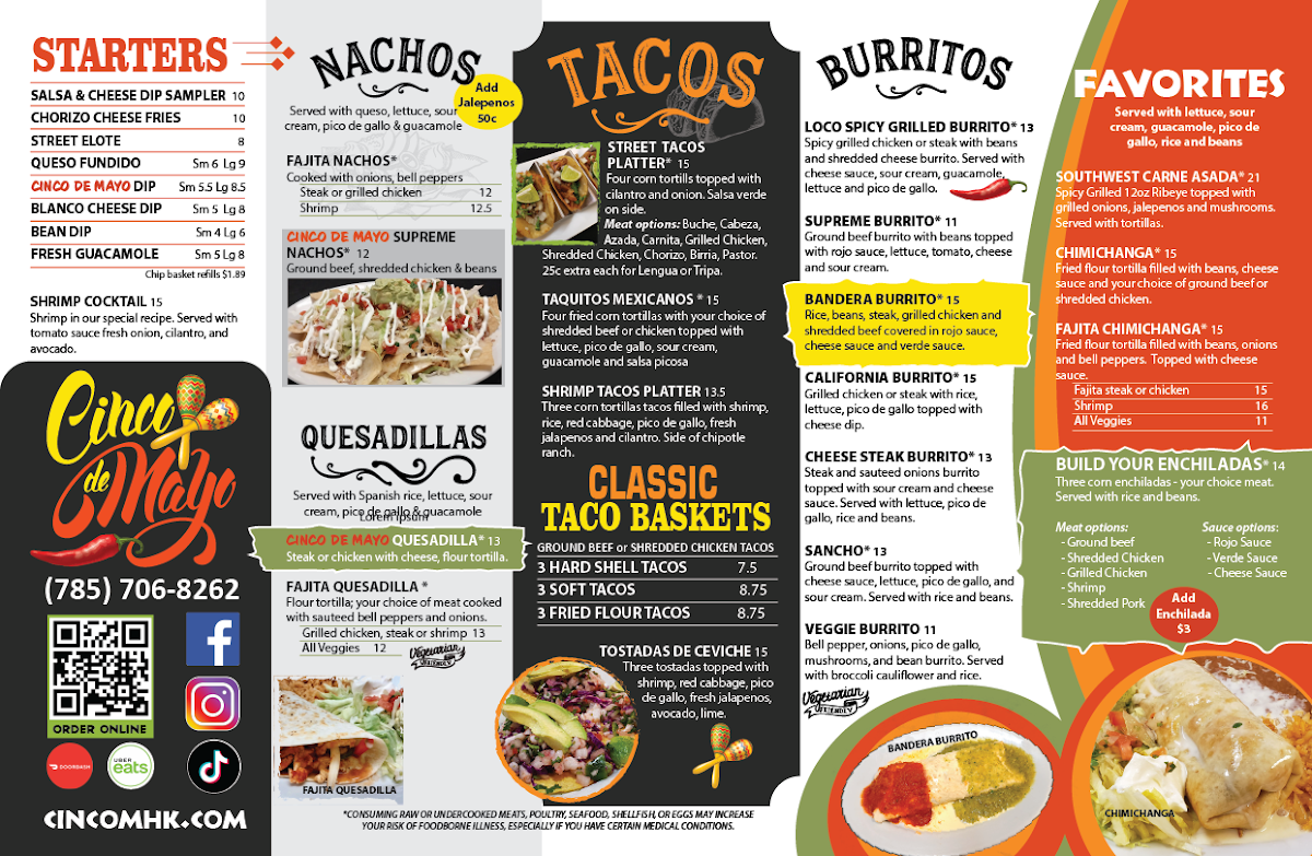 Welcome to Cinco De Mayo Mexican Restaurant, a hidden gem located at 1620 Fort Riley Blvd, Manhattan, KS. This vibrant spot embodies the essence of authentic Mexican cuisine, drawing rave reviews from locals and visitors alike. Diners have praised the chicken enchiladas and their exquisite Verde sauce, heralded as the best in Manhattan. The spicy chili de arbol salsa offers a unique kick, while the fresh beans and rice complement every dish perfectly.